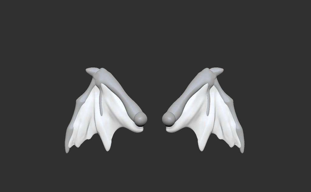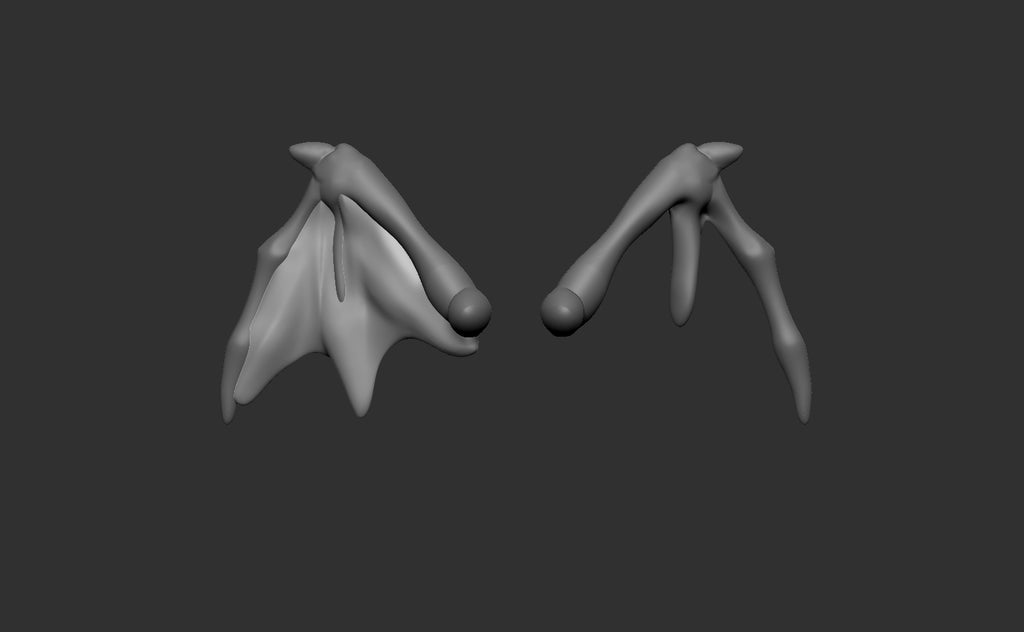 The outer skeleton structure of the wings was mocked out using 3 Sphereinder3d meshes that was then Booleaned to create a solid mesh. Using the Clay Brush mostly, I sculpted a wing like bone structure.